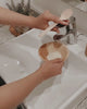Vierte una pequeña cantidad de polvo en la palma de la mano. Agrega unas gotas de agua para crear una pasta cremosa. Masajea sobre la piel húmeda como limpiador facial diario o aplica una capa más espesa como mascarilla facial hidratante.